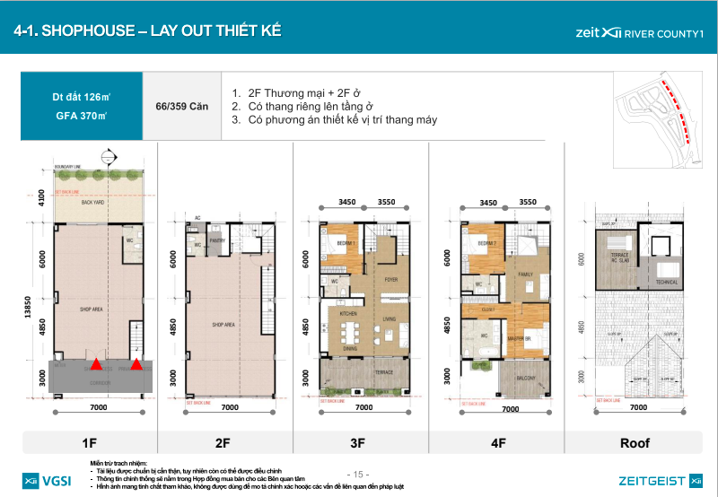 Diện tích: 126m2 ( 7m x 18m )