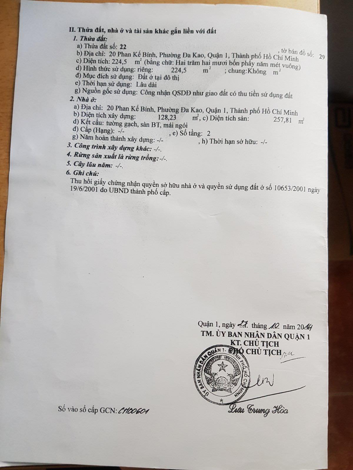 Bán biệt thự 20 Phan Kế Bính, Phường Tân Định ( P. Đa Kao cũ), Quận 1