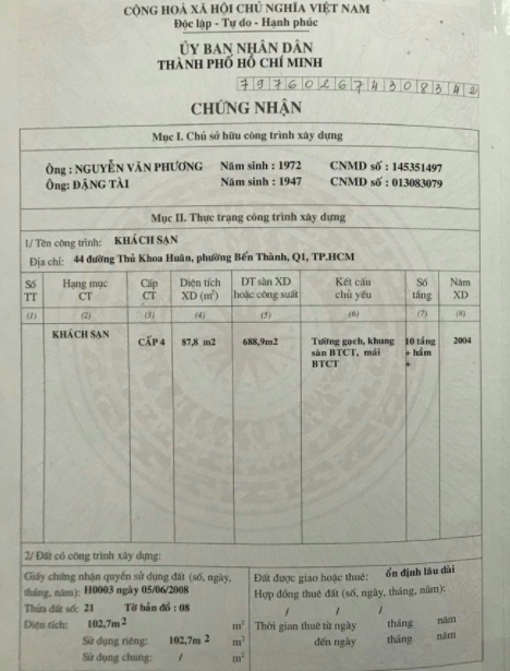 - Kết cấu: 1 Hầm, 10 tầng ( 2 căn riêng biệt nhưng chung Chủ). Tổng DTS: 1404m2