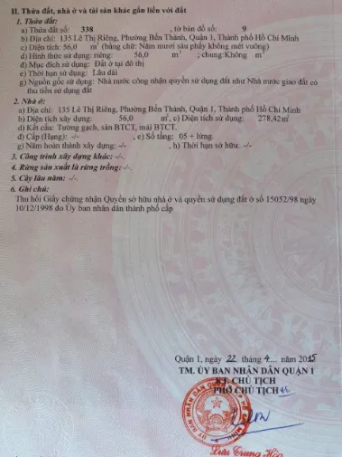 Bán nhà 135 Lê Thị Riêng, Phường Bến Thành, Quận 1