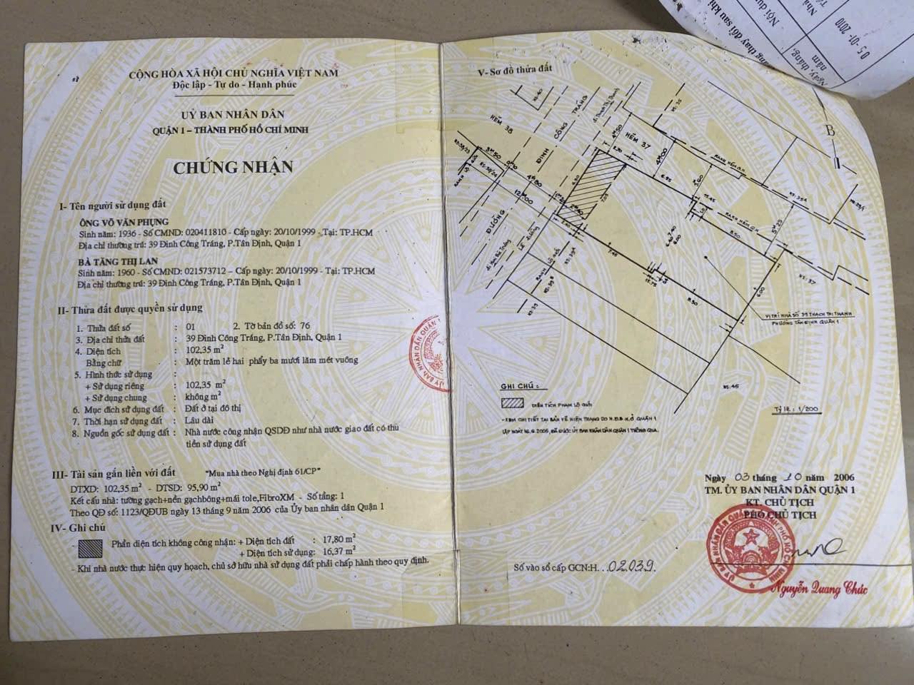 Bán nhà góc 2 mặt tiền 39 Đinh Công Tráng, Phường Tân Định, Quận 1