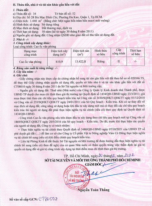 - Diện tích đất CN: 1440m2 ( Ngang 30m x Dài 49m )