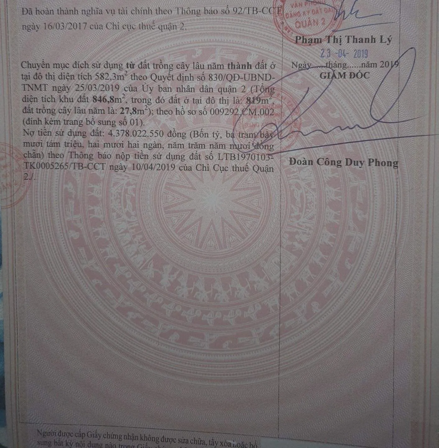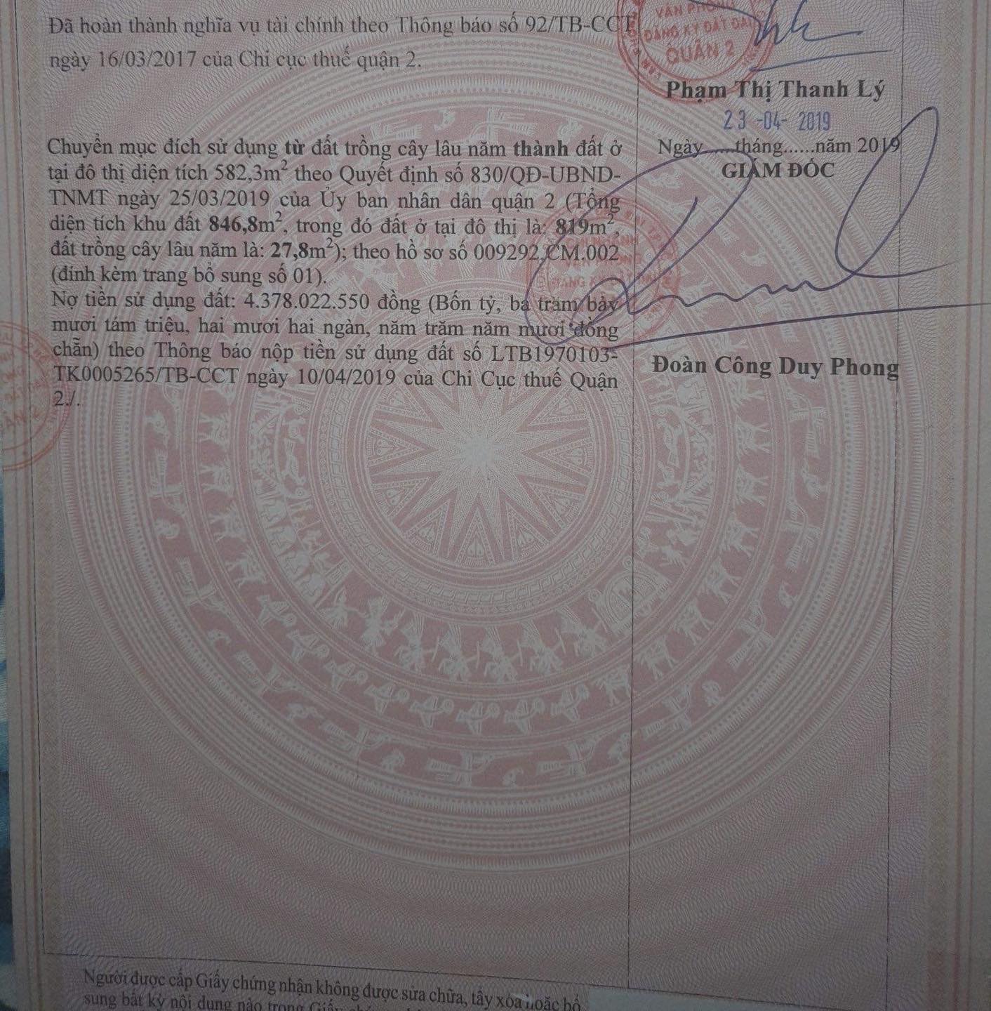 - Diện tích CN: 846,8m2 ( Ngang 24,6m x Dài 32,8m ). Thổ cư: 819m2