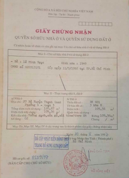 Giấy tờ pháp lý: Sổ hồng - Quyền sử dụng nhà và đất