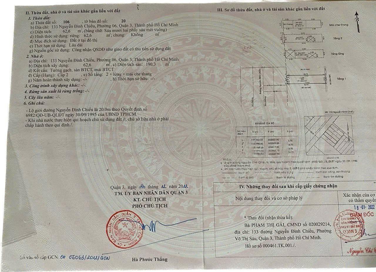Bán nhà mặt tiền Quận 3