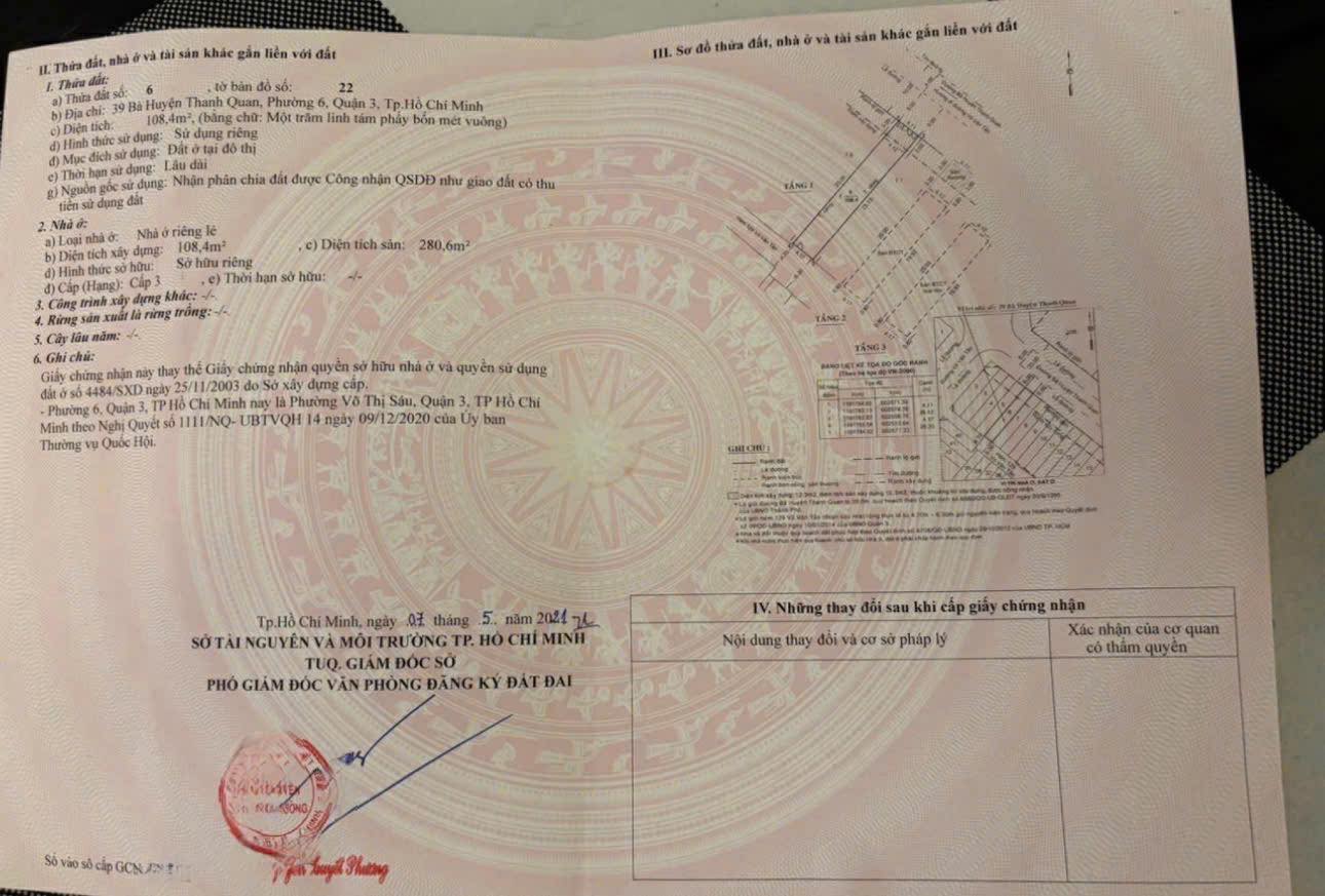 Bán nhà 39 - 41 Bà Huyện Thanh Quan, Phường Xuân Hoà ( P. Võ Thị Sáu cũ), Quận 3