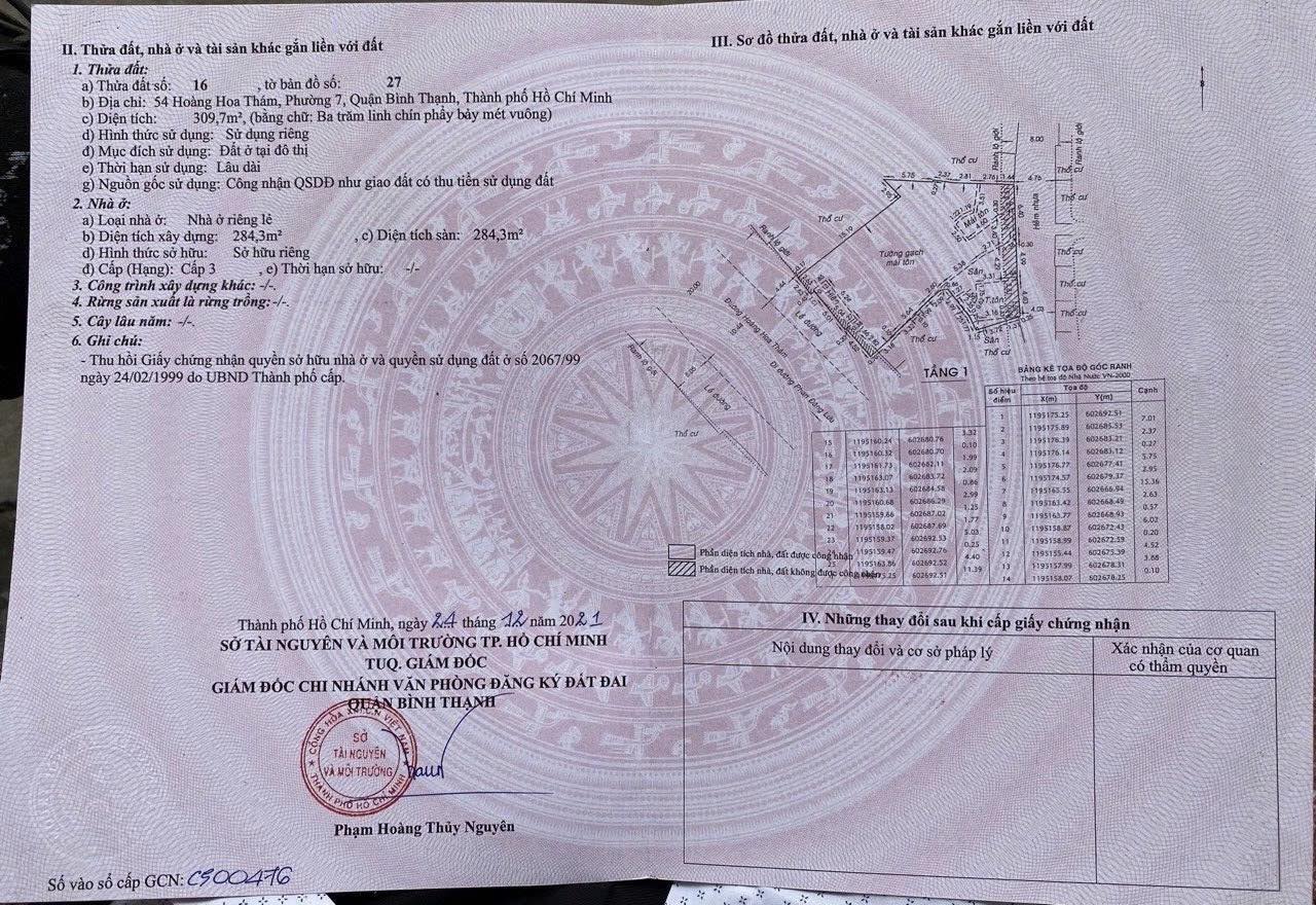 Bán đất 2 mặt tiền 54 Hoàng Hoa Thám, P. Gia Định, Quận Bình Thạnh, TP. HCM - Có hẻm sau đất