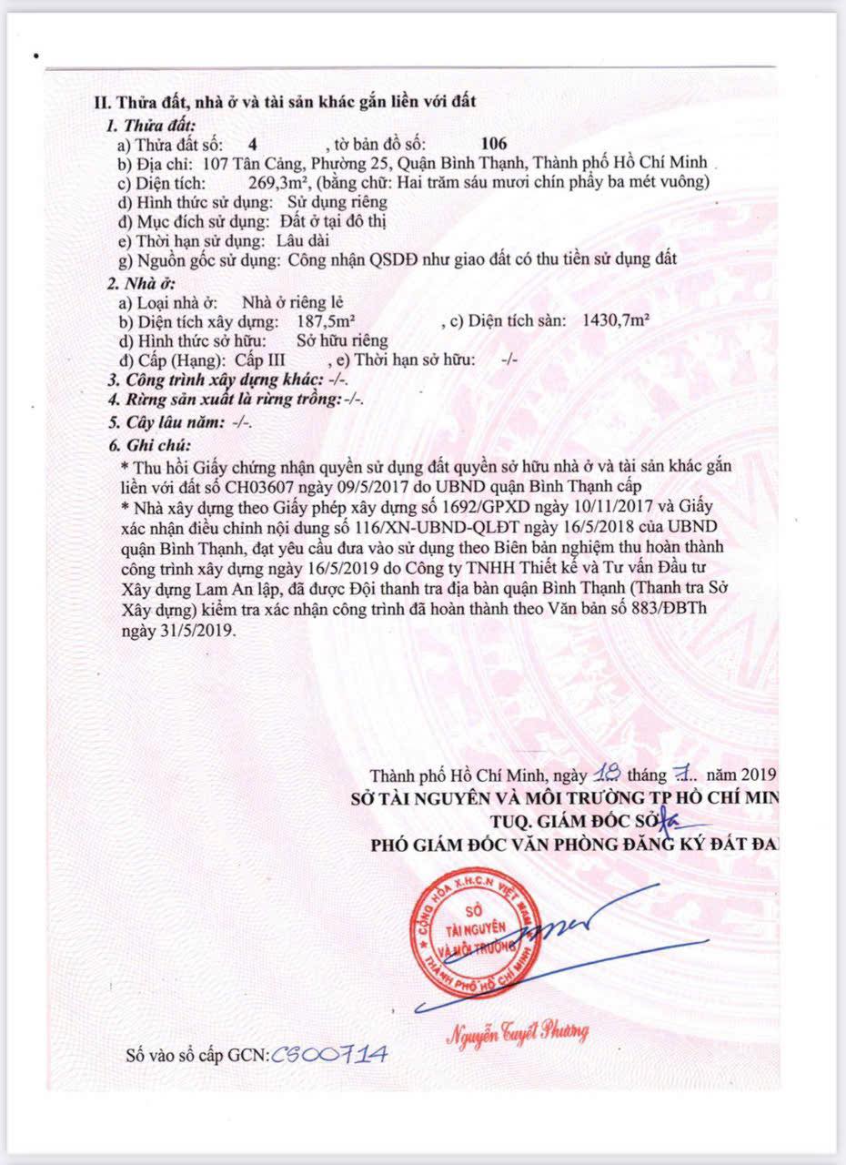 Bán toà nhà 107 Tân Cảng, P. Thạnh Mỹ Tây ( P25 cũ), Quận Bình Thạnh