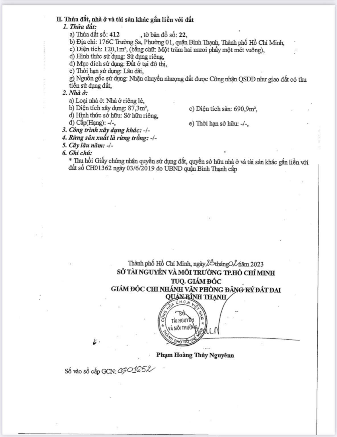 Kết cấu: Hầm + 7 tầng. Tổng DTS: 690,9m2