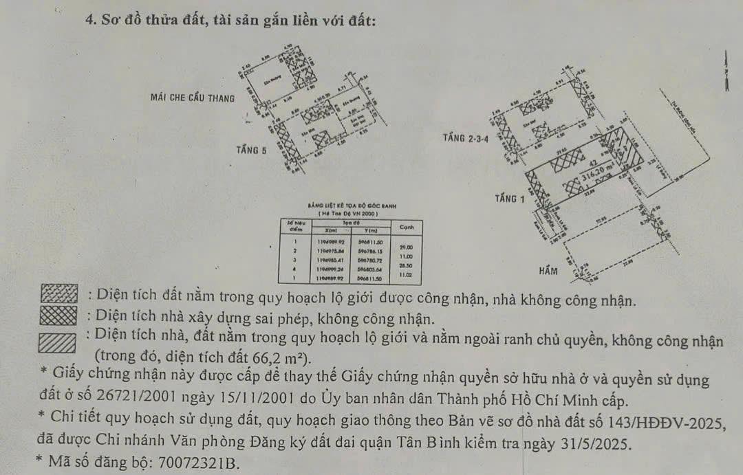- Kết cấu: Hầm, 5 tầng. Tổng DTS: 1108,41m2