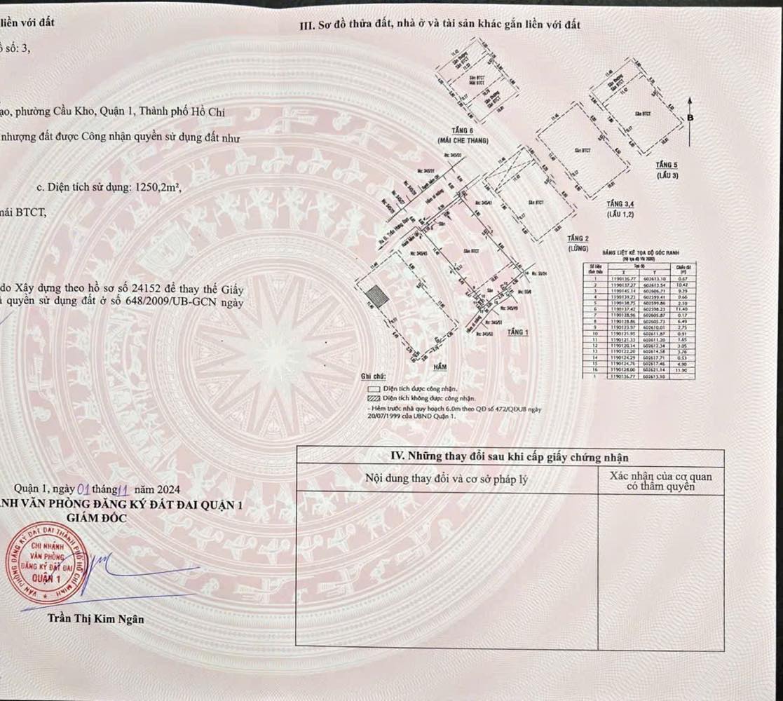 - Kết cấu: 1 hầm + 6 tầng. Tổng diện tích sàn: 1250,2 m²