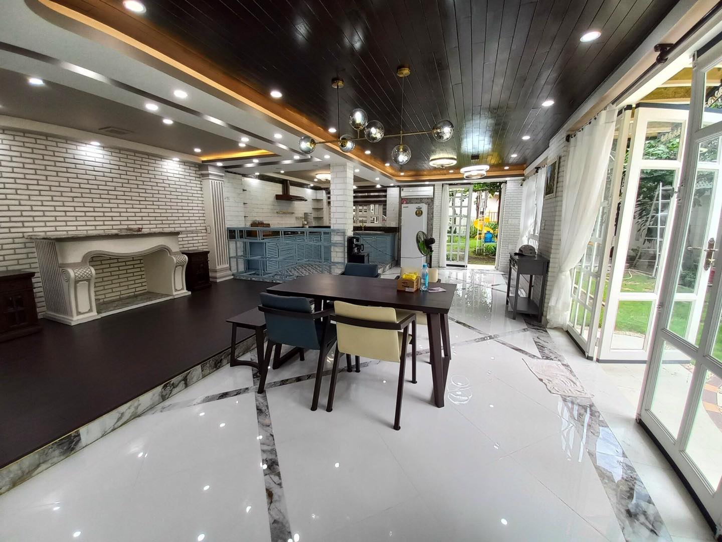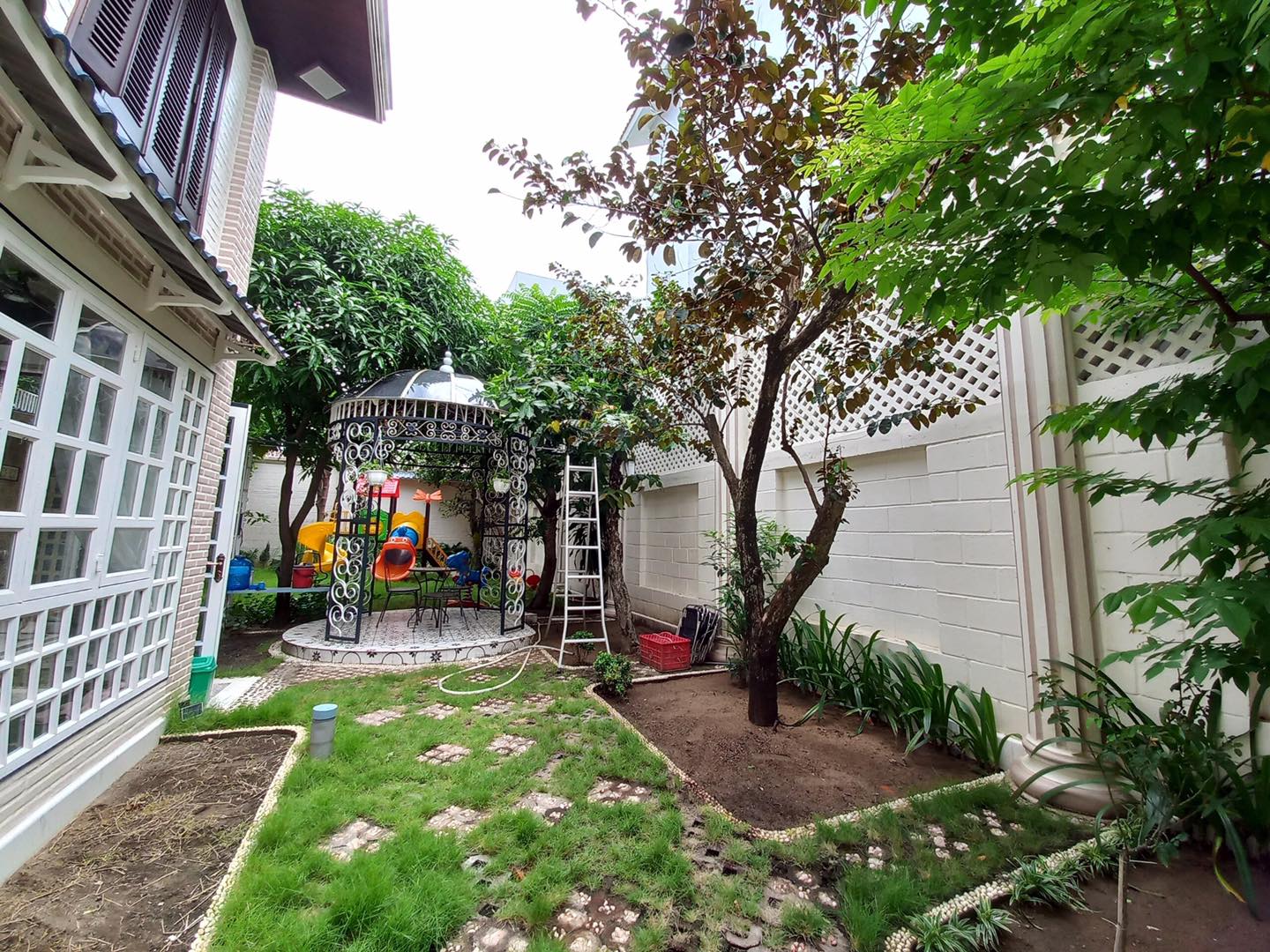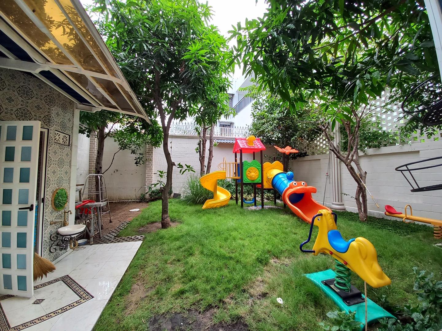 - Sân vườn thiên nhiên có nhiều loại cây ăn quả, có nhà vòm để ăn nhậu, thưởng trà, khu vui chơi trẻ em