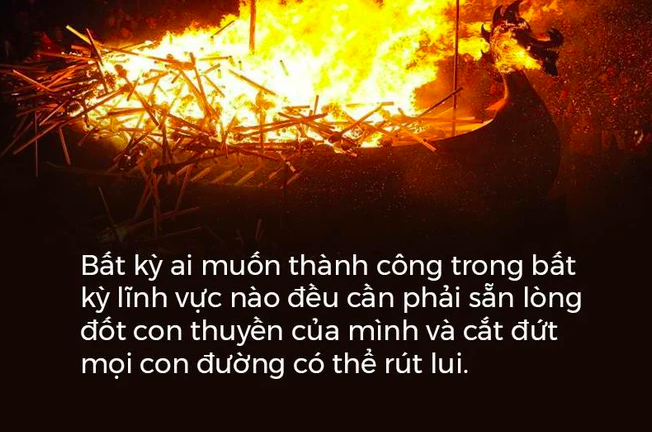 Bất kỳ ai muốn thành công trong bất kỳ lĩnh vực nào đều phải sẵn lòng đốt con thuyền của mình và cắt đứt mọi con đường có thể rút lui - đó là cách duy nhất để đảm bảo duy trì trạng thái tinh thần khát khao chiến thắng, điều kiện cần thiết để vươn tới thành công, Napoleon Hill viết.
