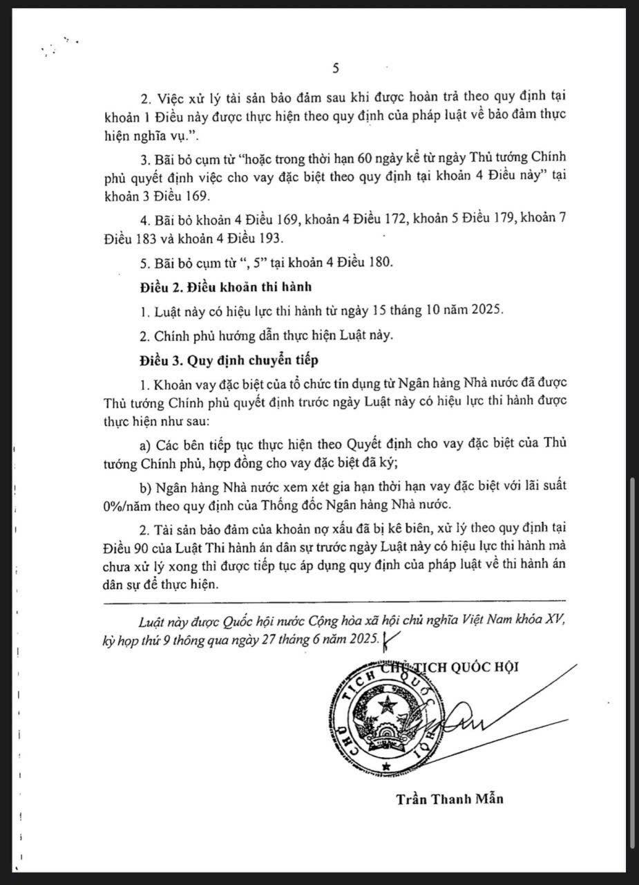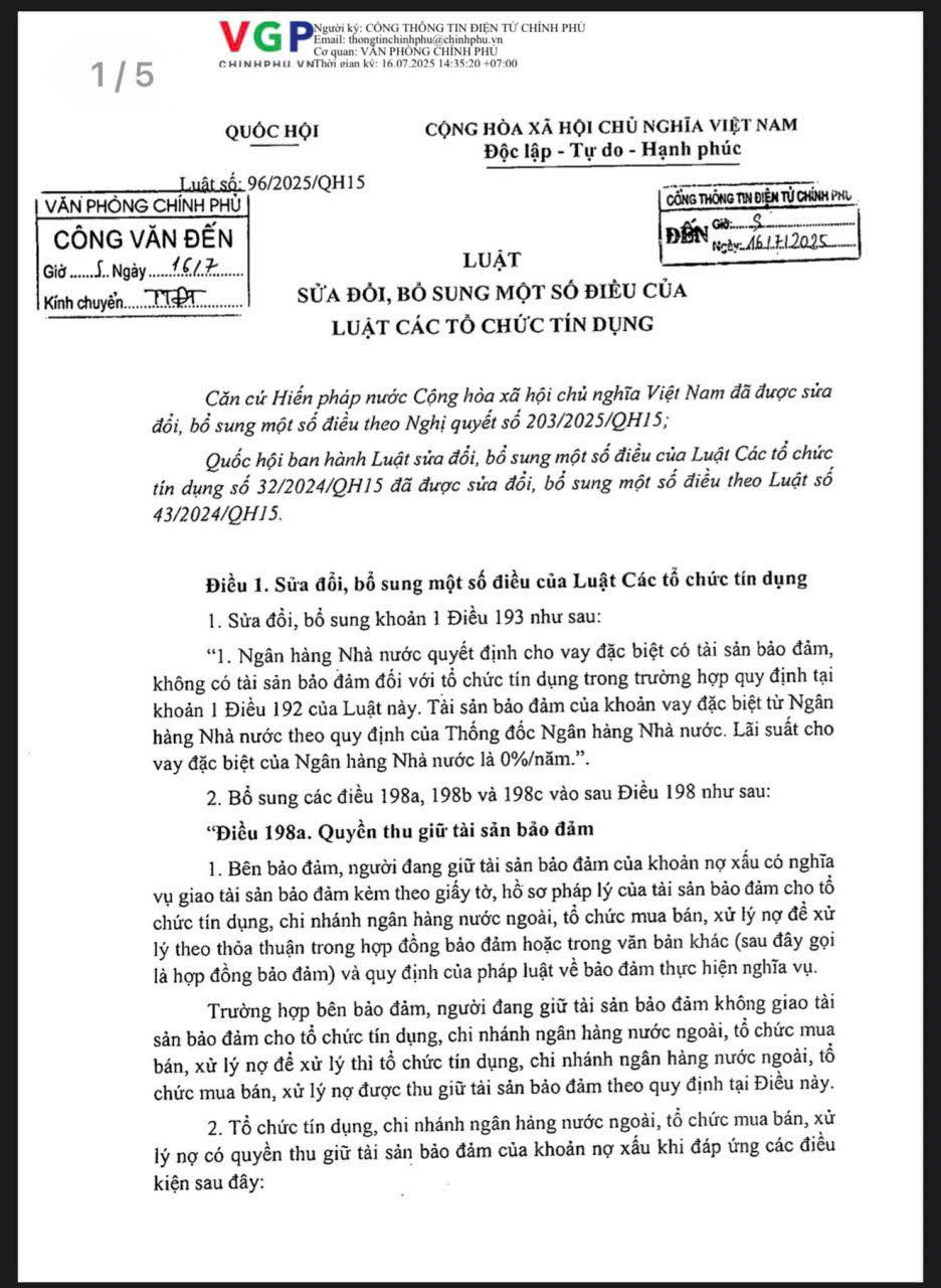 Hôm nay – 15/10/2025, một cột mốc rất đáng chú ý chính thức có hiệu lực: Luật sửa đổi Luật Các tổ chức tín dụng (96/2025/QH15)