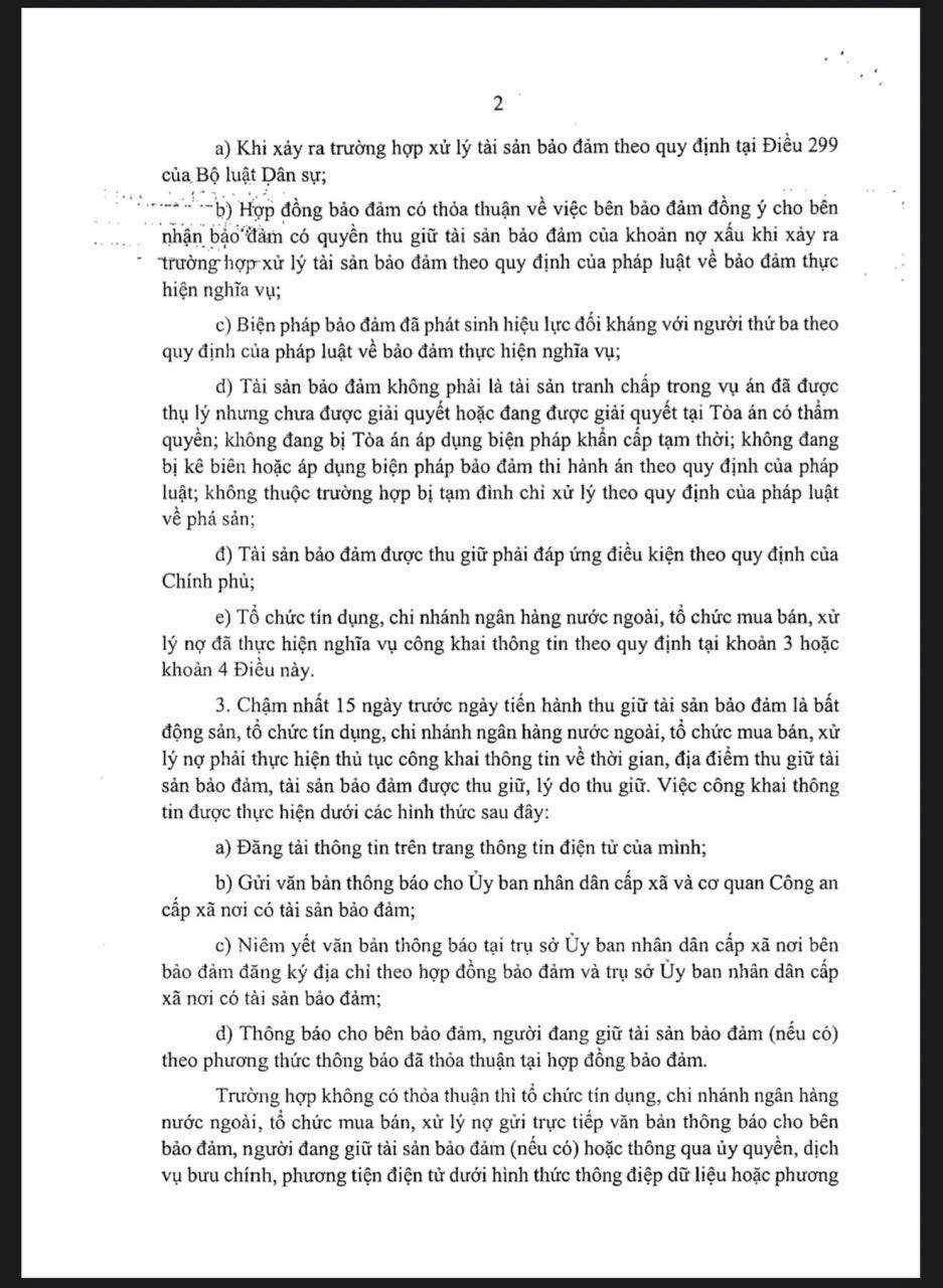 TỪ HÔM NAY, NGÂN HÀNG CÓ QUYỀN THU GIỮ TÀI SẢN BẢO ĐẢM ĐỂ XỬ LÝ NỢ XẤU